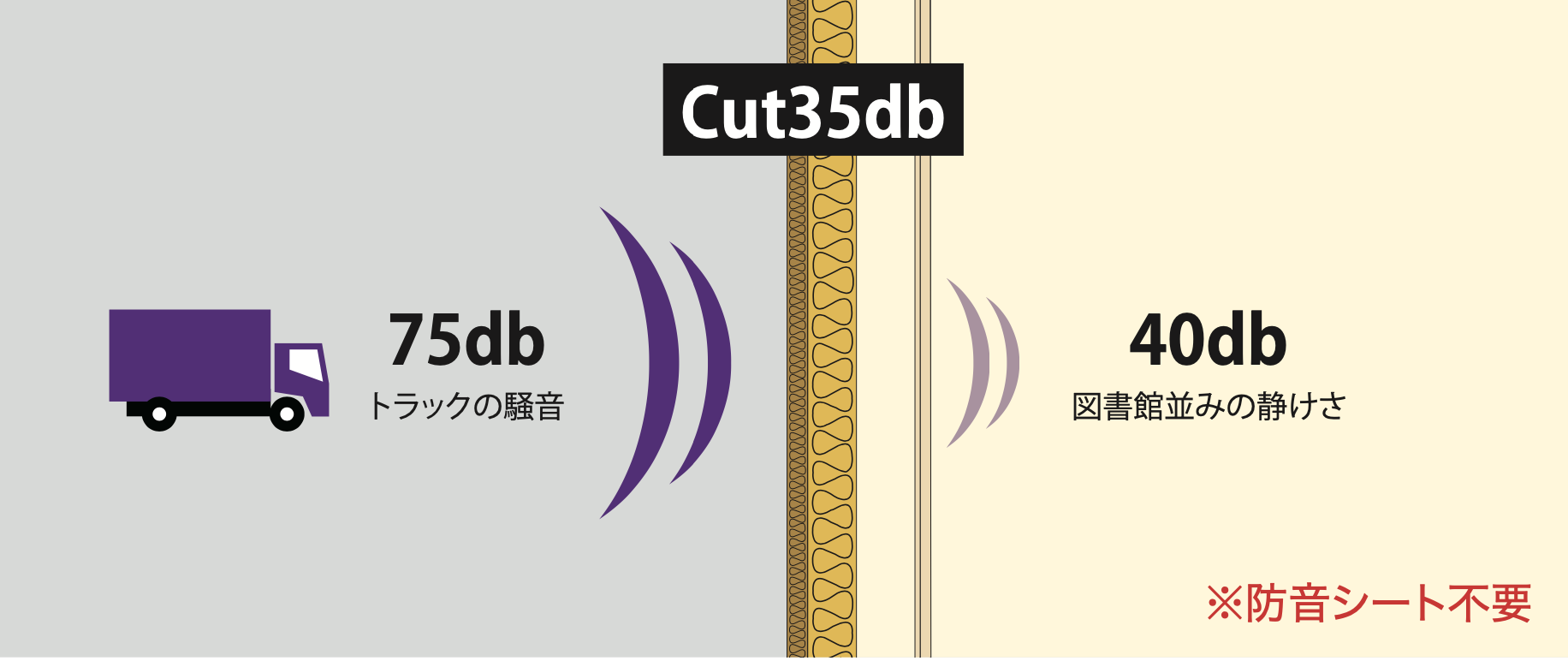 ECOボードは空気を多く含むスポンジの様な柔らかい断熱材と、密度が高く硬い断熱材があり、この2種類を組み合わせることによって、遮音性能をより高めます。